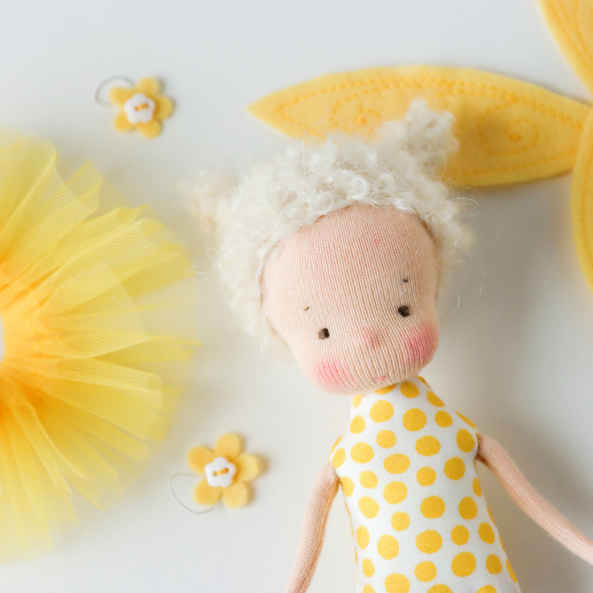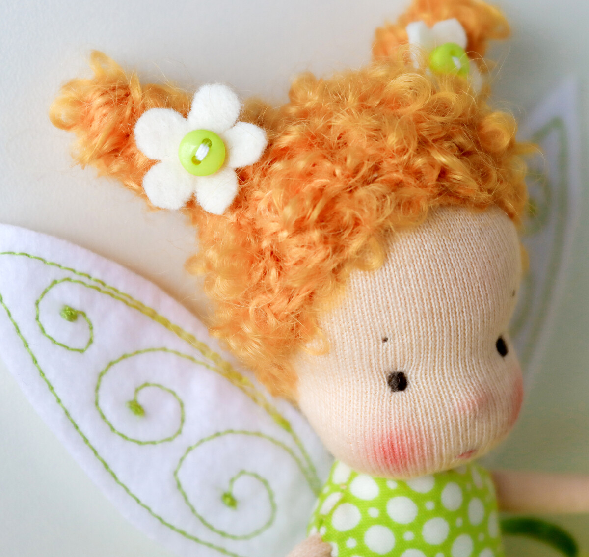 Тело, ручки, ножки феечек шьем из хлопка и трикотажа. Волосы у куколки из мягкой шелковистой пряжи букле.