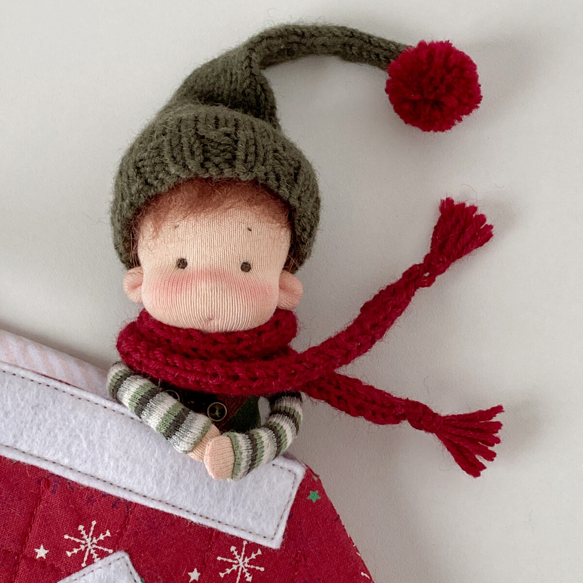 Размер гномика 15 см, он очень уютно помещается в ладошку